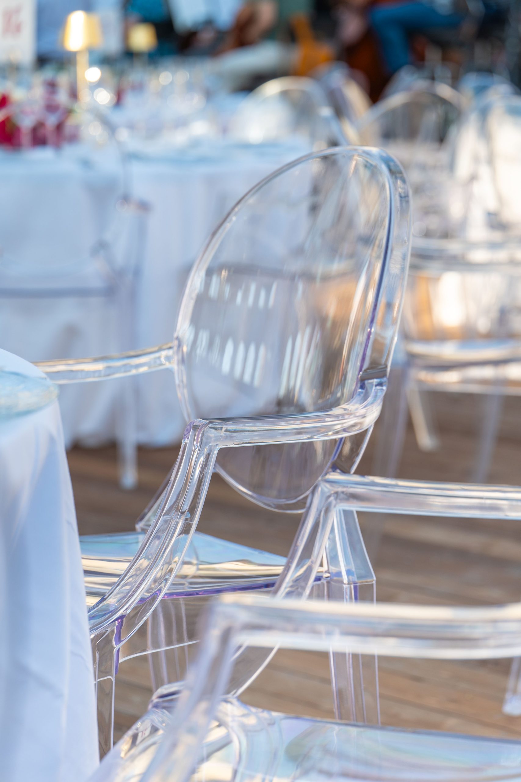 Stolica za najam Ghost izrađena od polikarbonata, idealno je rješenje za opremanje svadbi, svečanih i gala večera, ugostiteljskih objekata te organizacije raznih evenata i manifestacija. Stolica je sama po sebi, bez ikakve dekoracije poseban detalj te svakom vjenčanju ili bilo kojem drugom događaju daje notu luksuza i glamura. Stolica Ghost dio je linije proizvoda za iznajmljivanje catering opreme Ghia Staff.